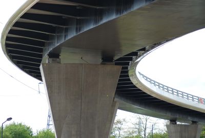 Tekst: <p>Het viaduct van Lezennes vormt de zuidelijke toegangsweg tot het nieuwe multifunctionele ‘Grand Stade’ van Lille (Frankrijk), waar de plaatselijke voetbalclub LOSC zijn wedstrijden speelt. Dit viaduct over de autoweg geeft uit op een parking voor 3.000 auto’s, is 204 m lang en over een lengte van 140 m in bovenzicht gebogen.<br>