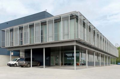 Tekst: <p>De opdracht bestond in de bouw van een hedendaags garagecomplex waarbij onthaal en uitstraling centraal staan. Gekozen werd voor een industriebouw met hoge afwerkings- en detailleringsgraad.<br>