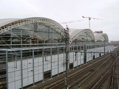 Tekst: <p>Het project van de overkapping van het station van Leuven maakt deel uit van een globaal renovatieproject van het bestaande station en zijn omgeving. De delen waar het hier over gaat zijn de gevel en de luifel richting Kessel-Lo. De openingen van het gestrekt metaal verminderen de luchturbulenties die veroorzaakt worden door de treinen die in en uit het station rijden, net als de invloed van de wind op de structuur. De gevel en de overlangse luifels beschermen de reizigers eveneens tegen de regen. De gevel hangt aan de hoofdbogen vast die het dak boven de rails dragen. De gevelstructuur in verzinkt staal, draagt de beglazingen door middel van T-profielen. De gevel is uitgerust met galerijen van stalen roosters en veiligheidsrails voor het onderhoud. De beglazing van de luifels hangt vast aan buizenprofielen in staal, die op hun beurt aan de gevelstructuur bevestigd zijn. In een ecologisch perspectief trachten de structurele principes optimaal gebruik te maken van de materie teneinde een structuur te realiseren met een minimaal dood gewicht.</p>