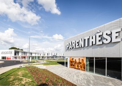 Tekst: <p>Een originele en ambitieuze architectuur ontwerpen voor een retailproject en tegelijk een aangename omgeving creëren voor de gebruikers: dat was het doel stelden voor het Parenthèse-complex in Gosselies. Het winkelcentrum springt uit de band dankzij zijn riant beglaasde, witte stalen schil en opvallende ruimtelijke compositie (twee gebouwen tegenover elkaar). Het 10.000 m2 grote complex ontleent zijn naam aan de symmetrische kromming van de gebouwen, die doet denken aan de alom bekende leestekens (haakjes).</p>