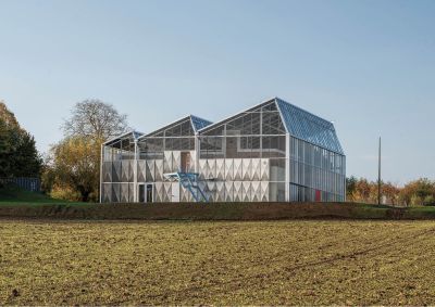 <p>De serre die gebouwd werd rond een stalen skelet – goed voor 23 ton - heeft een afdalend sheddak dat de ideale lichtinval uit het noorden toelaat. Binnen de onverwarmde serre heerst bijgevolg een tussenklimaat. De bezoekers zijn er beschut tegen regen en wind en kunnen toch genieten van het schitterend uitzicht op de omgeving.</p>