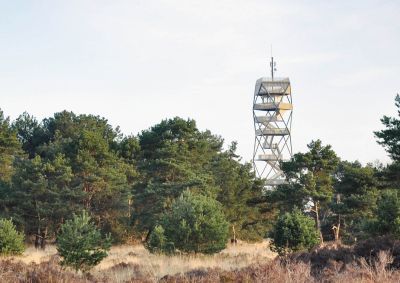 Tekst: <p>Sinds april 2022 heeft de Kalmthoutse heide een nieuwe brandtoren. De slanke constructie ziet op haar hoogste punt 42 m boven het natuurgebied uit en combineert brandcontrole met communicatie en recreatie. </p><p>De toren is samengesteld uit drie stalen vakwerken die zijn opgebouwd uit driehoeken van 6 m hoog. Door deze segmenten op een regelmatige manier ten opzichte van elkaar te verdraaien ontstaat een dynamisch effect waardoor het silhouet van de toren vanuit elke hoek een ander beeld laat zien.</p><p>Om het totaal volume aan staal binnen de perken te houden werd de constructie stijver en dus stabieler gemaakt door vier poten aan de basis toe te voegen. Voor de staalstructuur werd bijzondere aandacht besteed aan de staalknopen waar telkens 6 geboute kokers en walsprofielen in één punt moeten uitkomen. Ter hoogte van elk knooppunt worden de kokers onzichtbaar aan de knoop verankerd. </p>