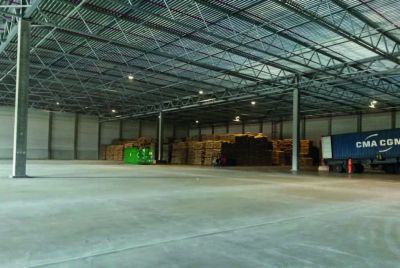 Tekst: Het magazijnencomplex (50.000 m²) voor Antwerp Logistic Center aan het Churchilldock in de Antwerpse haven is bestaat uit een structuur van 1.600 ton thermisch verzinkt staal. De loodsen, die hoofdzakelijk bestemd zijn voor de opslag van cacaobonen, voldoen aan strenge veiligheidsnormen. De eerste hal van 12.000 m² werd na amper zes weken wind- en waterdicht opgeleverd.