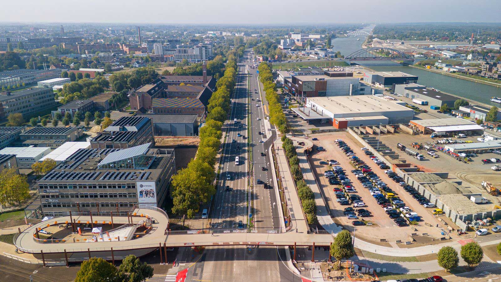 Campusbrug over druk kruispunt
