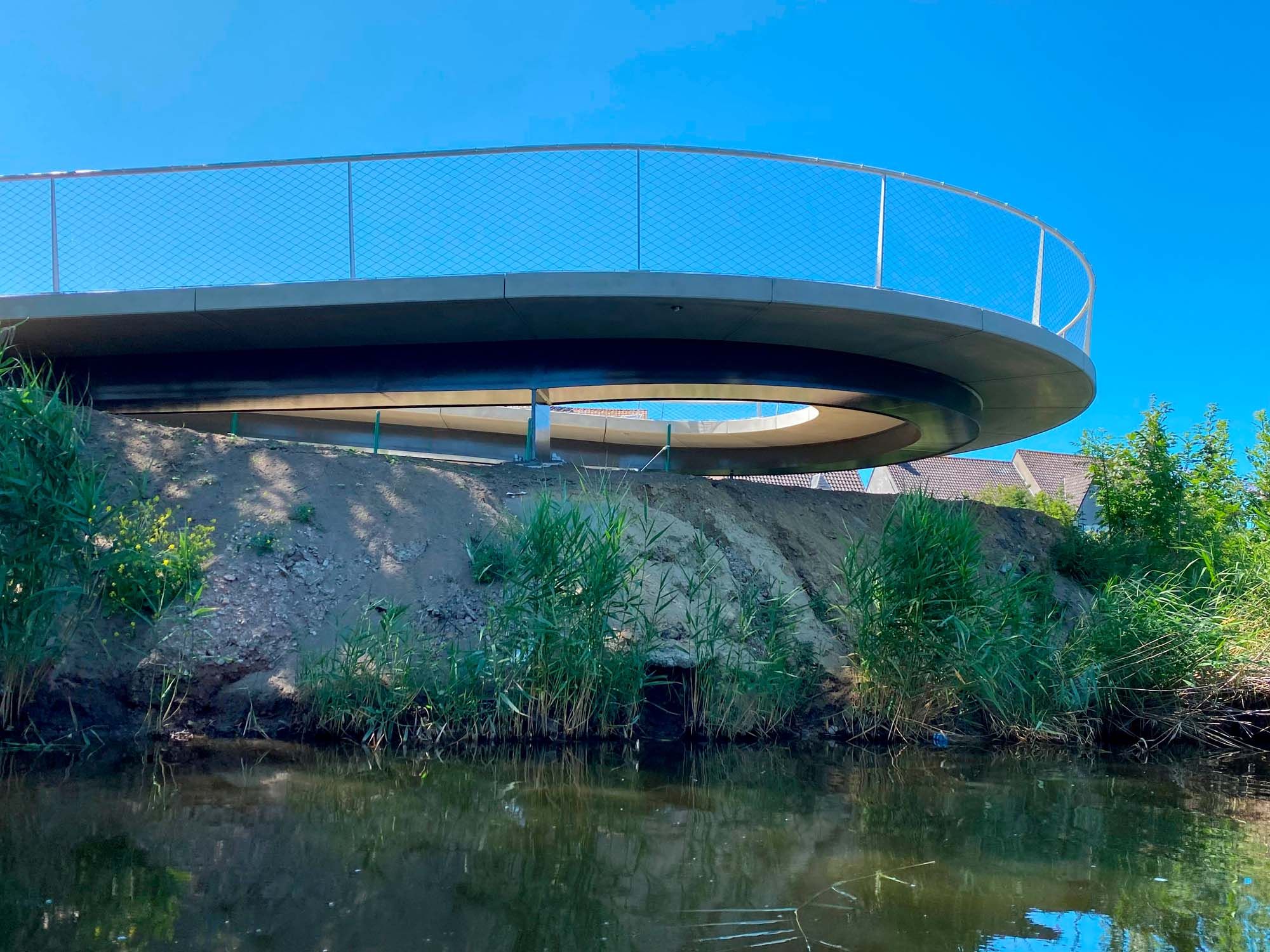 Kronkelende fietsersbrug over Genkse Ring