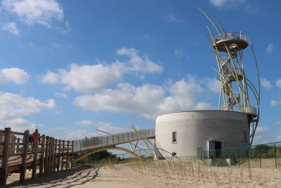 - Tekst: <p>D’un ancien château d’eau inaccessible à un poste d’observation à gravir librement, il y avait un pas de géant que les architectes de WOW architectuur n’ont pas hésité à franchir. Le long de notre côte belge, ils sont parvenus à intégrer discrètement au paysage un objet étranger à la nature pour l’offrir au public tel un poste d’observation des environs.<br> Reliant Middelkerke à Westende, les dunes de la Warande constituent une réserve naturelle de 32 hectares en excellent état de conservation offrant une riche diversité de végétation. Buissons de hauteurs variées, végétations dunales et oyats de tous types y prospèrent depuis que le monde est monde et côtoient des mares qui accueillent grenouilles et autres amphibiens. C’est ici que se dressait depuis toujours un château d’eau inaccessible au public, un ouvrage qui avait certes son utilité mais qui pouvait heurter le regard dans ce paysage de dunes. La commune a donc pris la décision de remplacer cette construction artificielle par un point d’attraction touristique à taille humaine.</p>