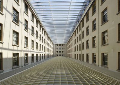 Tekst: <p>'De Grote Hal' is een overdekte openbare ruimte in het midden van het huizenblok, die het kanaal verbindt met de wijk Heyvaert en verder met het project 'Parc de la Senne' in Molenbeek, en die verschillende functies heeft: crèche, ateliers, circusschool en intergenerationele huisvesting. Het project werd geselecteerd als 'Be Exemplary' voor de participatieve aanpak waarop het is gebaseerd, de landschappelijke dimensie, de circulaire constructie voor de restauratie van de voormalige industriële hal en de recuperatie van regenwater voor intern en extern gebruik.</p>