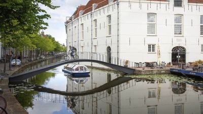 Tekst: <p>Om het oude legermuseum in Delft (NL) te ontsluiten, zijn twee stalen boogbruggen voor voetgangers geplaatst. De bruggen overspannen de grachten over een afstand van respectievelijk 13 en 16 m en leiden naar het hotel, restaurant en congrescentrum in het voormalige artilleriemagazijn. </p>