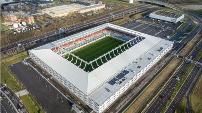 Tekst: Het nationaal stadion van Luxemburg – gelegen aan de zuidelijke grens van de hoofdstad, in de bloeiende wijk Cloche d’Or – verenigt een innovatief design met een uitzonderlijke functionaliteit en strategische ligging. Het stadion biedt plaats aan 9471 toeschouwers en het speelveld is geschikt voor zowel voetbal als rugby.
