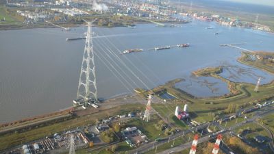 Tekst: Elia’s Brabo project in the port of Antwerp had two important objectives: firstly, to increase the capacity of the high-voltage grid and thereby guarantee security of supply for the entire Antwerp port area, and secondly to reinforce the north-south axis of the Belgian high-voltage grid and strengthen the international European interconnections between electricity systems. Phase II of the project called for the construction of 58 new lattice towers, including four that were very special: the P2 and P3 high-voltage pylons for the Scheldt crossing were 192 metres high, making them the tallest in the Benelux area, whilst the P4 and P5 pylons for the Kanaaldok crossing were each 142 metres high. The pylons were designed in L-profiles made of S355J2 steel with maximum dimensions of L300x300x35. The two tallest weigh 572 tonnes apiece and are made up of 15,026 pieces – the longest of which is 12 m long – fastened together with 58,987 bolts.