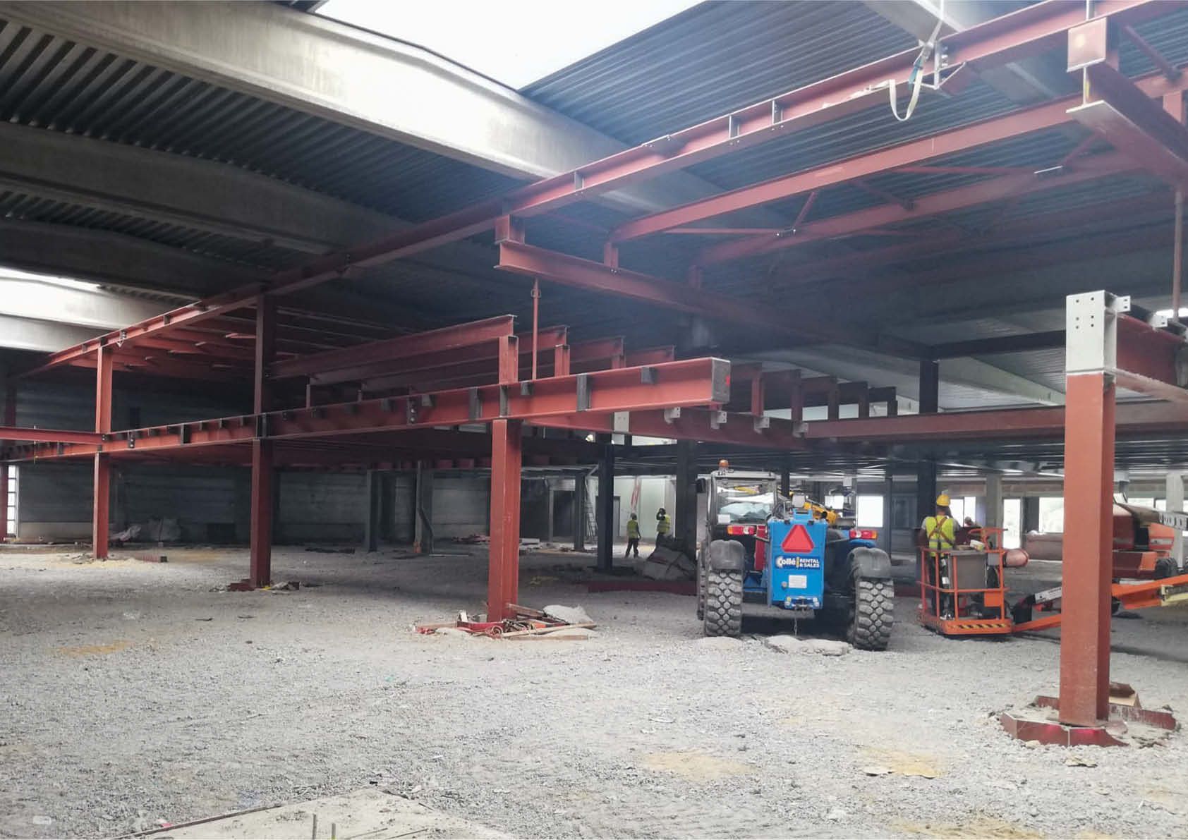 Avant de commencer les travaux, une nouvelle fondation indépendante a été réalisée, au moyen de tubages pleins en acier. Compte tenu de la structure dans le bâtiment existant, la longueur et le poids maximal des poutres en acier devaient être limités. Au total, pas moins de 565 tonnes d'acier ont été utilisées pour les planchers de l’étage, y compris un traitement ignifuge complet (plus de 10 500 m² de peinture ignifuge). Au-dessus de la structure en acier, 2 700 m² de planchers à grille et 1 250 m² de planchers à queue d'aronde (Cofrastra) ont été installés.