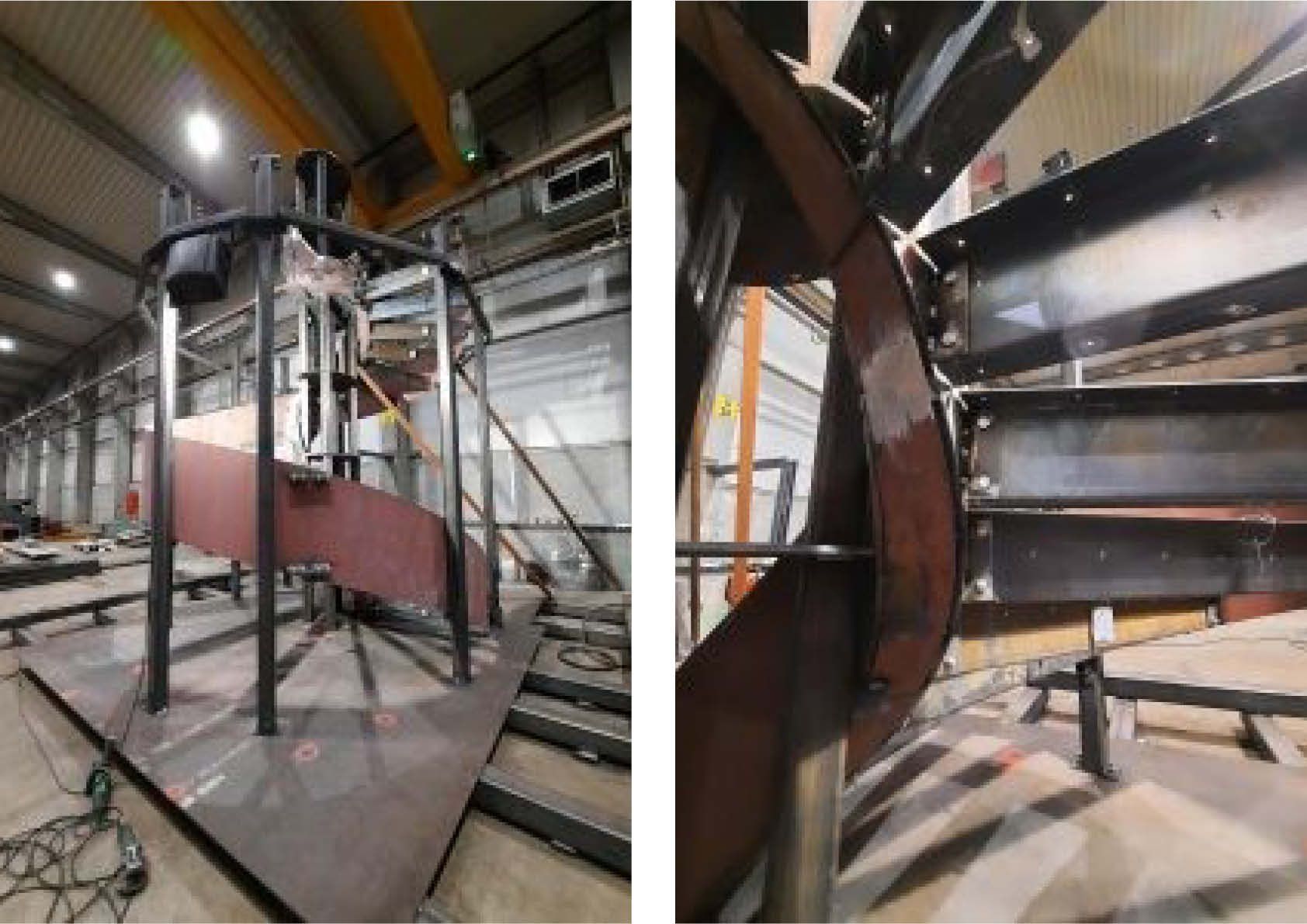 Bien que l'escalier en colimaçon ne pèse que 4,2 tonnes au total, il a été divisé en plusieurs parties de construction. Ces pièces ont en fait été hissées au sommet du penthouse et introduites par une étroite ouverture sur le toit du bâtiment. Les différentes parties de la construction ont ensuite été soudées ensemble sur place. Des accouplements d'assemblage ont été utilisés pour maintenir les relations entre les différentes parties de la construction.