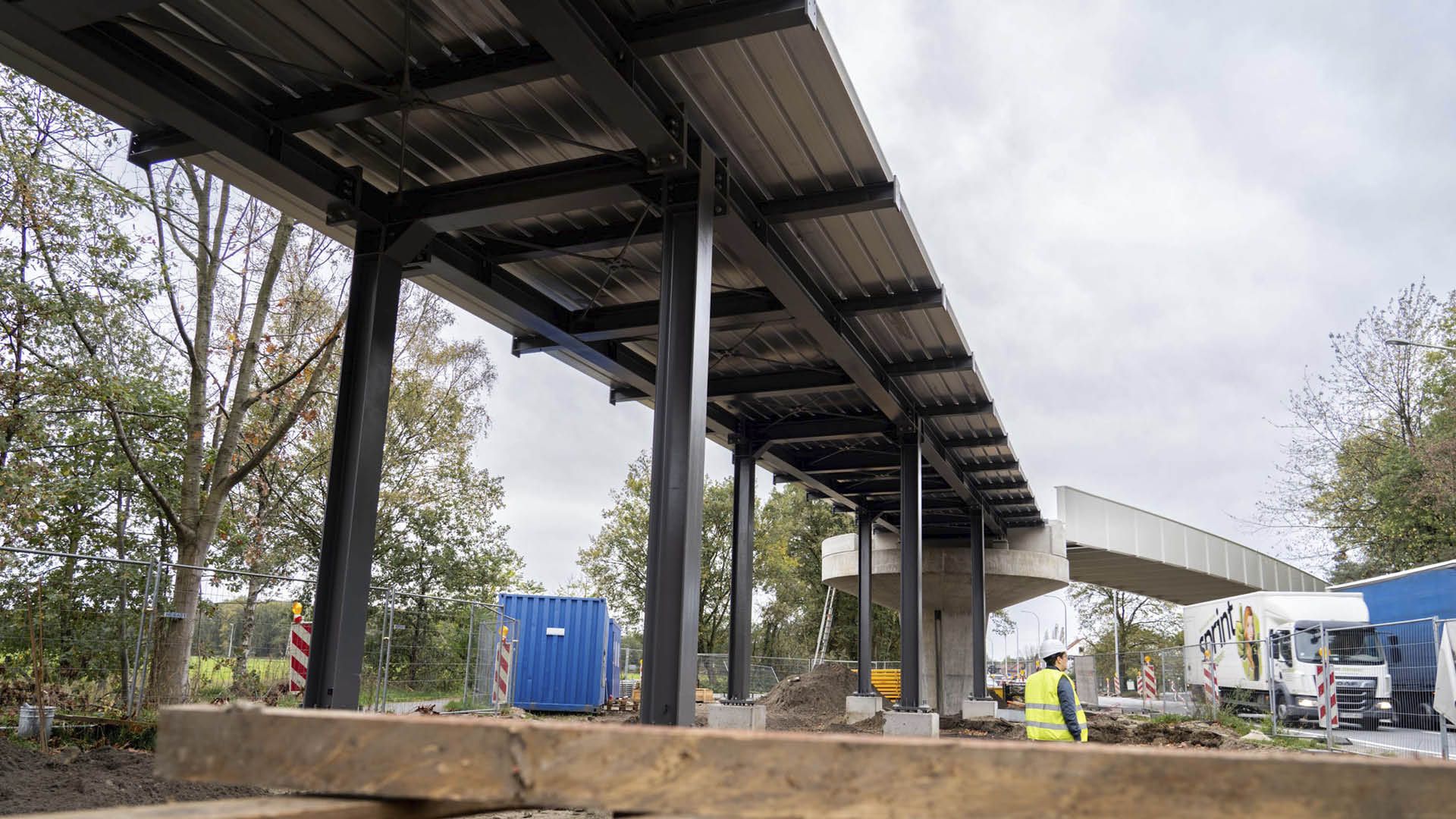 Le passage cycliste crucial au-dessus de la N715 Grote Baan à Houthalen-Helchteren, qui fait partie de la piste cyclable F74 (Hasselt-Eindhoven), vise en tant que ‘gain rapide’, à résoudre une importante partie manquante de la piste cyclable, tout en éliminant un passage à niveau dangereux pour les cyclistes.
