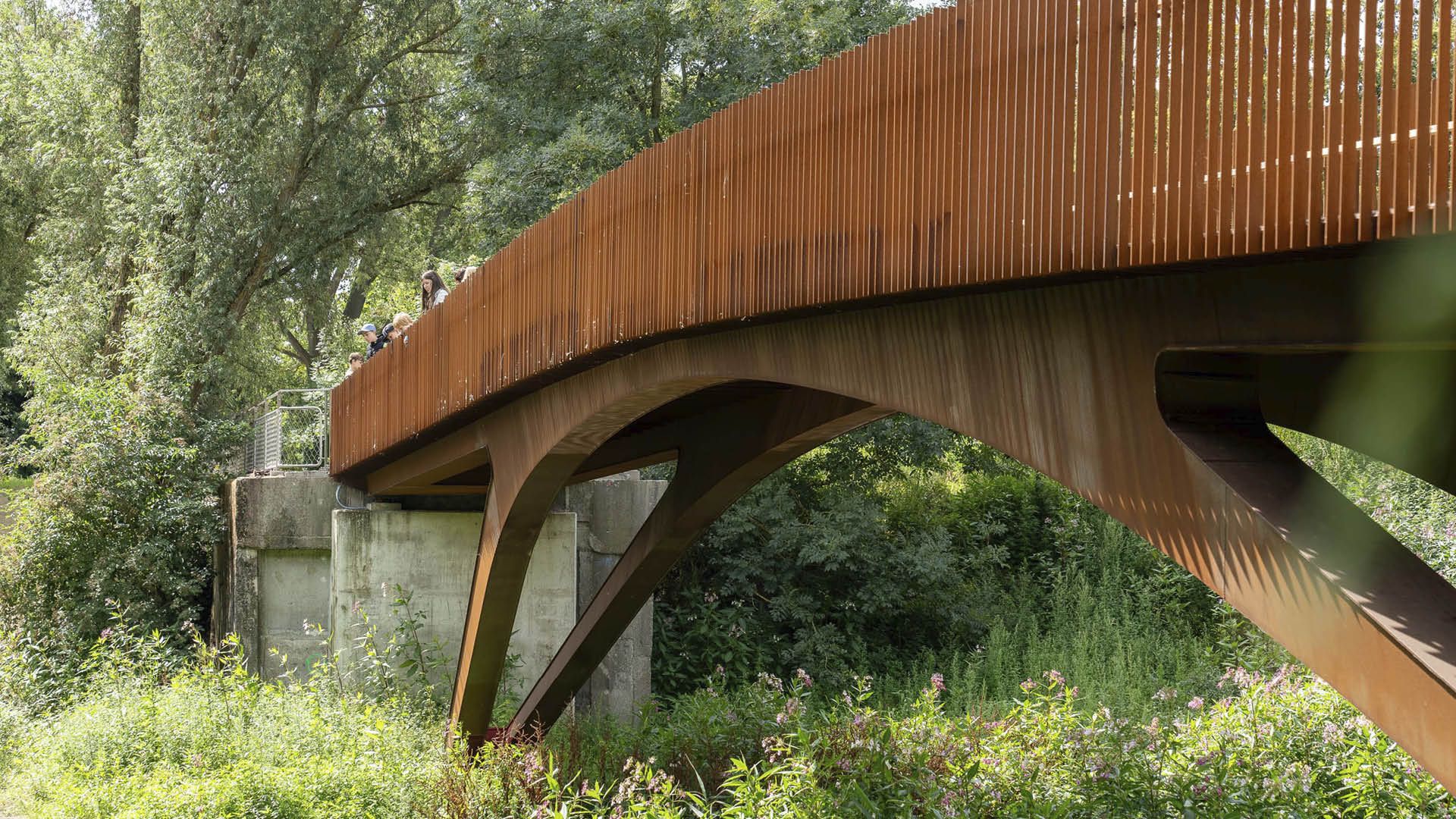 Le pont est un pont portique de 42,50 m de long en acier auto-patinable. Le tablier du pont est une tôle d'acier raidie reposant sur deux poutres. Ces poutres fermées se poursuivent de chaque côté du pont comme des ‘jambes’ porteuses pour former le structure de portique. En bas, elles se rejoignent en un seul point. Ce point est articulé (appareils d'appui à balanciers en acier inoxydable). Le pont est donc un portique articulé avec des nœuds rigides. Les extrémités du tablier reposent sur chaque culée sur deux appuis classiques en néoprène qui permettent la dilatation thermique. Les culées sont construites en béton armé et fondées sur des micropieux.