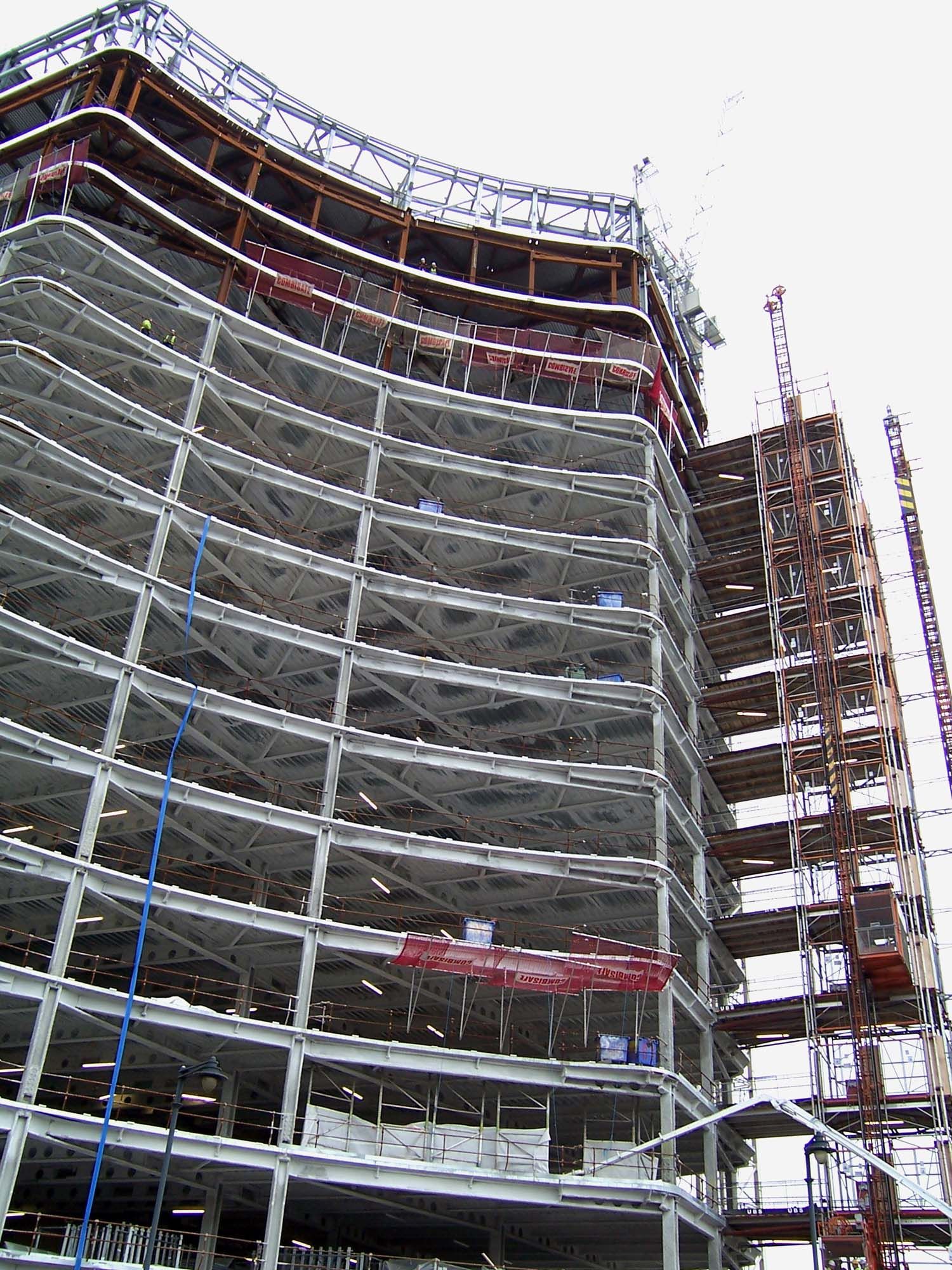 BP2 Bear Stearns International est un immeuble de bureaux de 15 étages situé à Londres. Le plan est typique pour un immeuble de bureaux anglais, c’est-à-dire un noyau en béton autour duquel s’élève une structure en acier. Les cages d’ascenseur et d’escalier se trouvent dans le noyau en béton. La structure en acier abrite elle les bureaux et est ancrée au noyau en béton au moyen de dalles en acier.