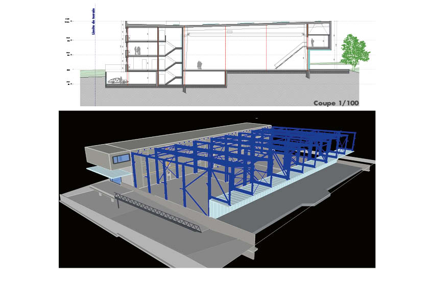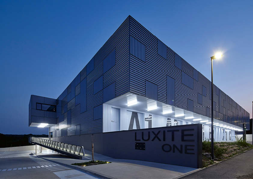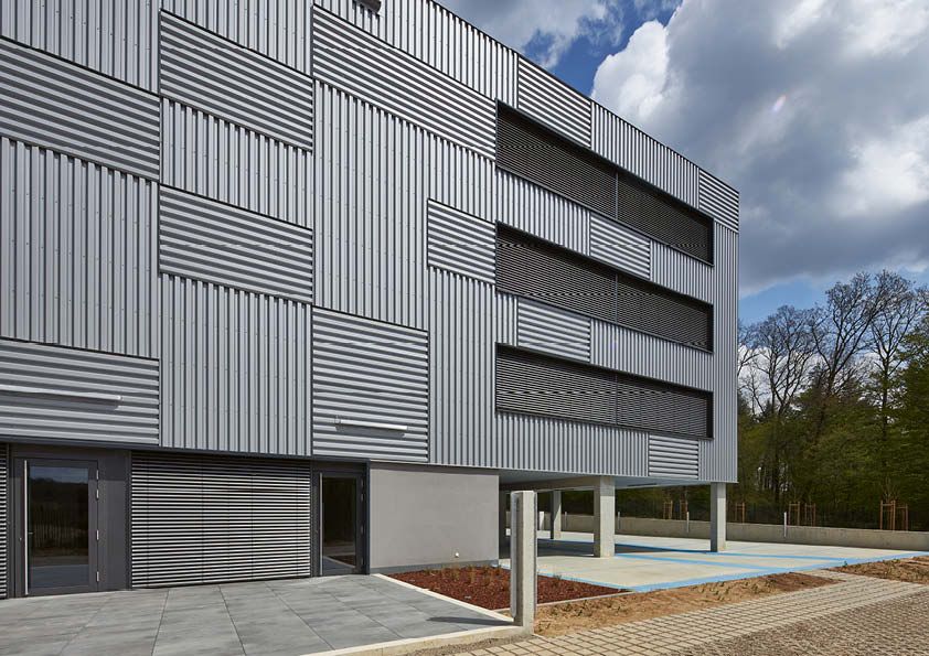 De gebouwen omvatten twee grote functies: kantoren en industriële hallen, aangevuld met gemeenschappelijke ruimtes. Dit resulteert in een flexibel en modulair geheel. Staal is er alomtegenwoordig: draagstructuur (het volledige skelet van de hallen), dak, schil (sandwichpanelen + gevelbekleding) en afwerking/sloten (meer bepaald borstweringen, leuningen in de trappenhuizen en binnendeuren). De gevels met een metaalbekleding (georiënteerde sandwichpanelen) hebben een variabele dynamiek, waarvan de esthetiek dankzij de schaduwwerking varieert naargelang de tijd en de seizoenen. Het gebruik van staal werd gerechtvaardigd door de nood aan een snelle uitvoering op basis van een strakke planning (een week montagetijd voor de draagstructuur), de grote overspanning van de draagstructuur (hal met open grondplan en uitkraging boven de vrachtwagentoegang, die enkel realiseerbaar was in staal) en de vereiste flexibiliteit van de ruimtes.