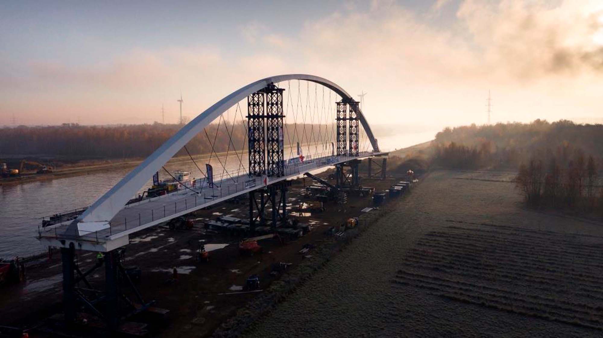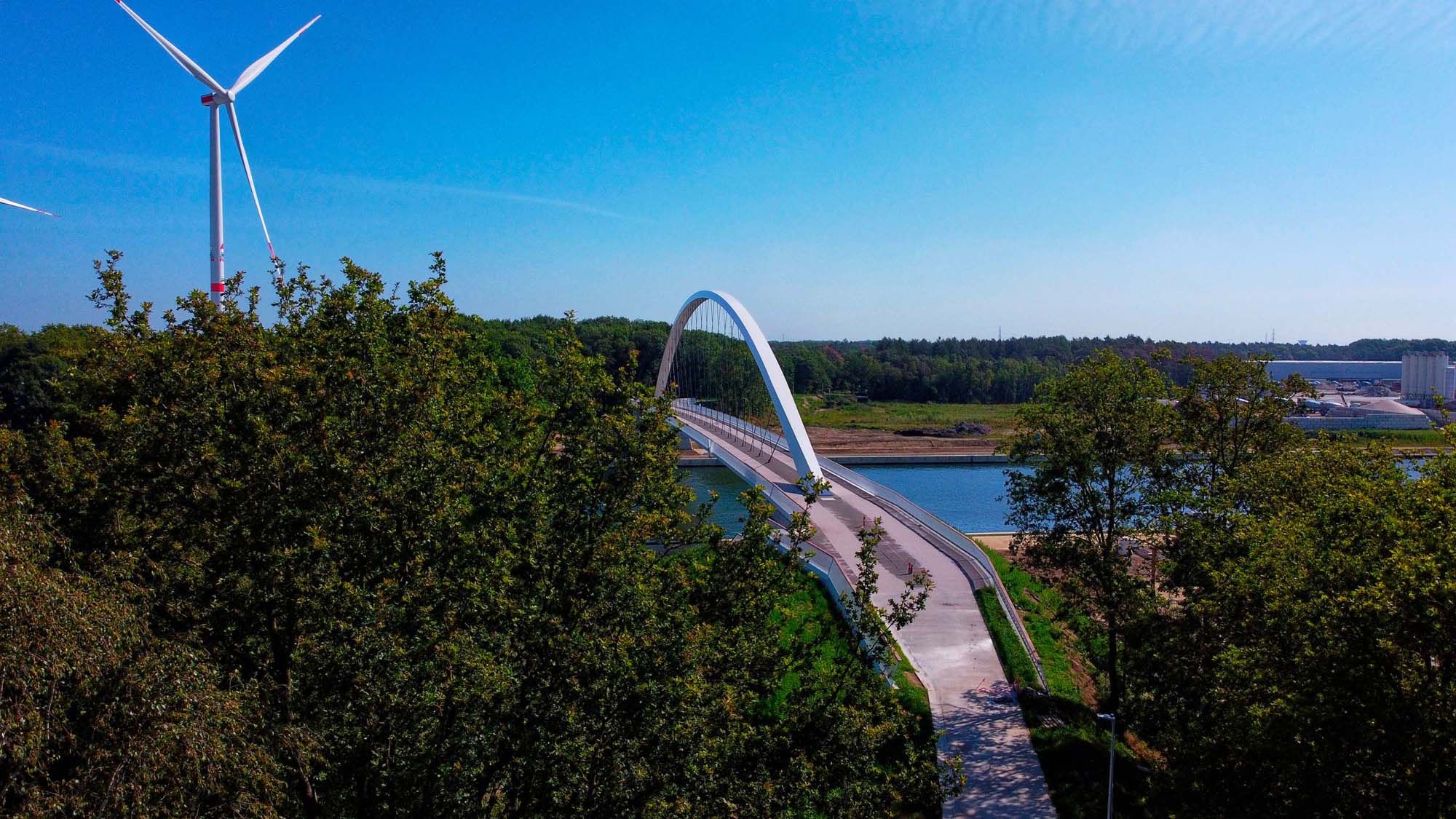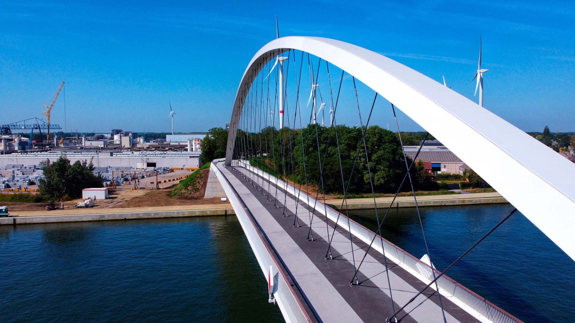 In Tessenderlo werd een bestaande kanaalbrug vervangen door een nieuwe stalen voetgangers- en fietsersbrug. De boogbrug is 22 m hoog en overspant in één veld 137 m. De enkele boog staat in de as van de brug.