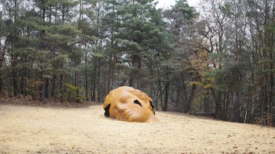 Bevreemdende sculptuur in het landschap