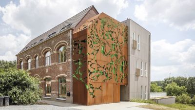 Glaskap nieuw kantoor Willy Naessens